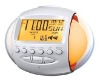 Alarm clock with nature sound and radio * Time (12/24h), date (2000 2099),weekday, month, temperature (Centigrade/Fahrenheit) display * 7 language display available for weekday, the default is English * Alarm and snooze function with 7 nature sound, 5 music and radio as the alarm ring * 7 volume levels adjustable for nature sound, music and radio, the default is 4 level * 7 color light rings with the light changing as per the sound (alarm of nature sound and music or demonstration sound) rhythm changes * Nature sound and music demonstration with 7 color light changing and volume adjustable * Nature sound and music timing function: 10m/20m/30m/40m/50m/60m * Count down timer function * FM radio with 6 channels pre-set and channels, frequency display * Power supply: 3 x AAA battery or DC 4.5V and 2 x AG13 cell battery as backup Unit size:13.5x8.4x10.2cm